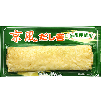 「京風だし巻」は、かつおだしの豊かな風味とふんわりとした食感が特徴です。甘さ控えめで上品な味わいは、冷めても美味しく、お弁当やおかずにぴったり。温めることでさらにふわふわ感が増し、だしの旨味がより一層引き立ちます。