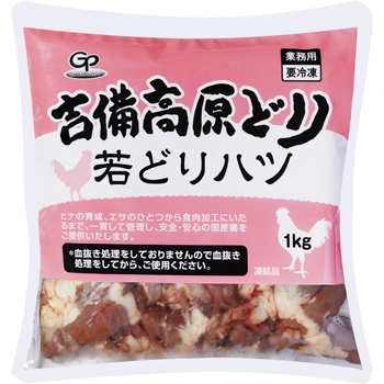 ヒナの育成からエサ、加工まで自社関連工場で一貫管理された吉備高原どりのハツを使用し、安心・安全な品質を実現しています。
