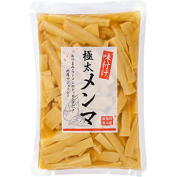 極太カットならではのしっかりとしたシャキシャキ食感が楽しめ、噛むごとにメンマの旨味が広がります。
