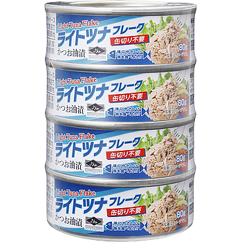 『ライトツナフレーク缶(かつお油漬:80gx4缶)』人気のポイント:クセがなくまろやか、どんな料理にも合う味わい